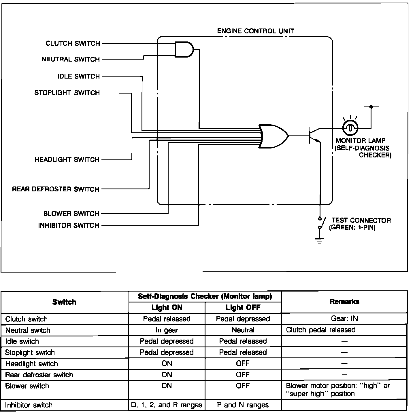 ^ The ECU Switch Monitor Function permits checking individual switches with the Mazda Self-Diagnosis Checker (SST 49 H018 9A1) or a compatible aftermarket "Scan" tool.