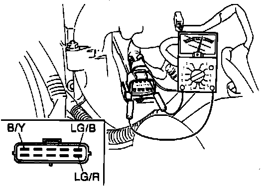 Check between terminals B/Y & LG/B