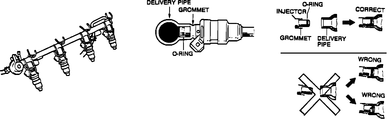 2. Secure injectors to fuel rail with wire, making certain that injectors are straight and cannot move (see illustration).