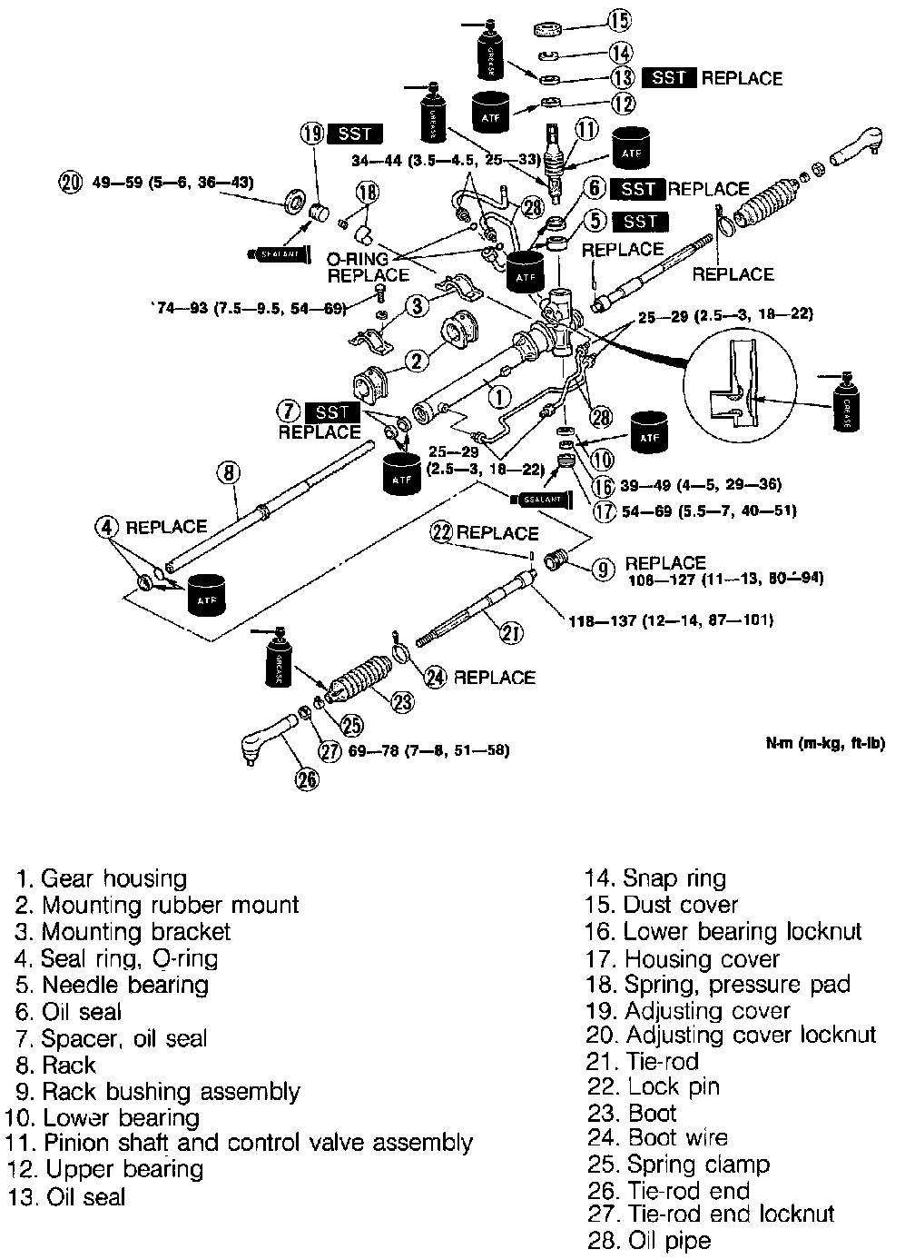 Tightening torque: 54-69 N.m (5.5-7 m-kg, 40-51 ft-lb)
