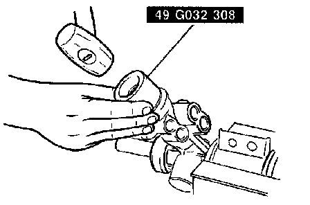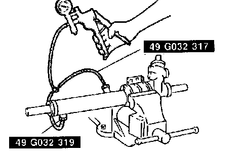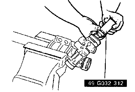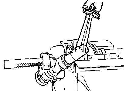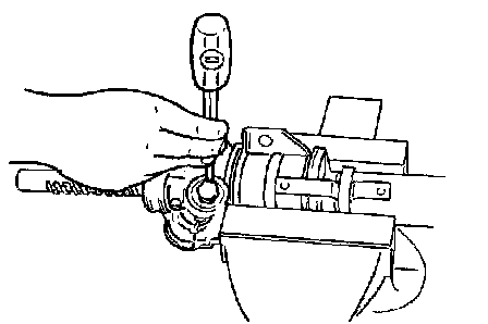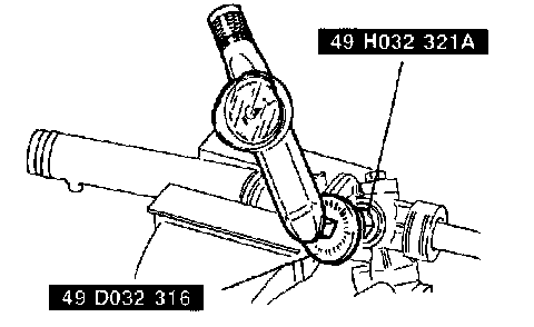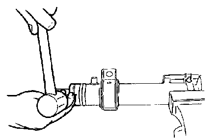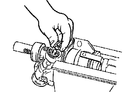2. Invert the housing and install the locknut on the pinion shaft. Turn it until the tie-rod contacts the tube.