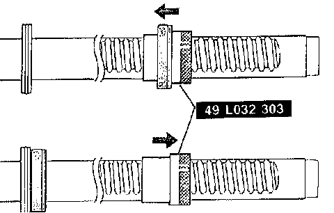 3. Set the oil seal on the rack through the rack teeth with the SST (49 L032 303) as shown.