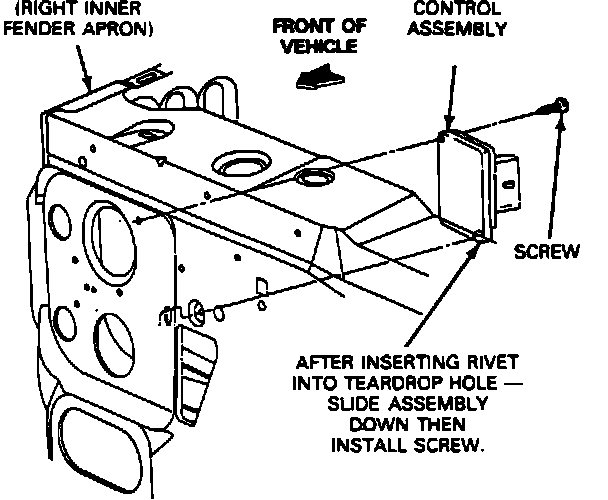 4. To replace, insert module rivet into tear-drop mounting hole on fender apron and push into position.