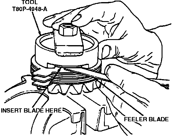 Fig. 33 Installing Tool T80P-4946-A Or Equivalent To Measure Shim Thickness: