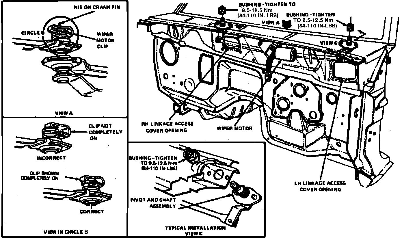 Fig. 4 Front Windshield Wiper Motor Retaining Clip Removal & Windshield Wiper Transmission Replacement: