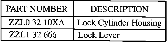 1. Replace the lock cylinder housing assembly (ZZL0 32 10X) with the new assembly (ZZL0 32 10XA) according to the Workshop Manual (Section N-04, page 52). Figure 1.