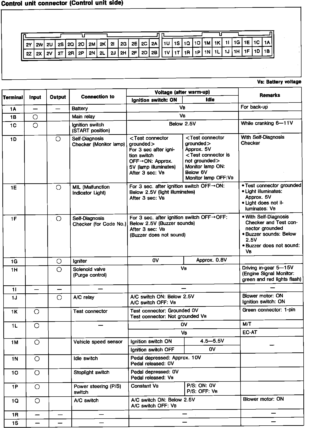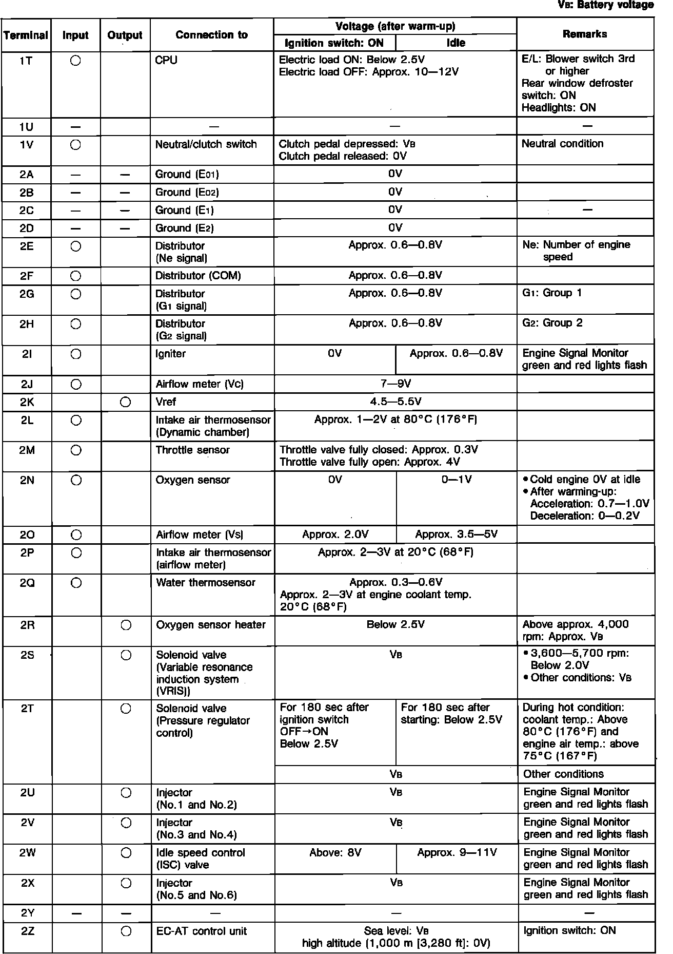 Engine Control System. ECU Pin Voltage Chart:
