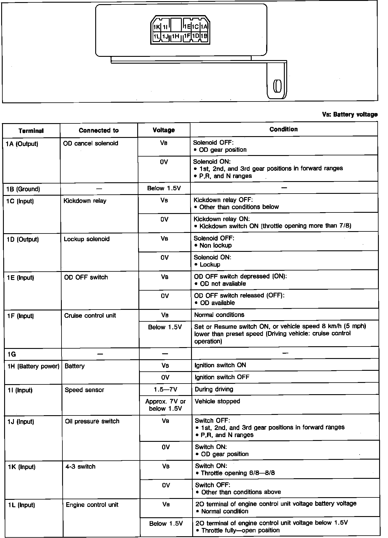 4AT Control System And Shift Lock System. ECU Pin Voltage Chart: