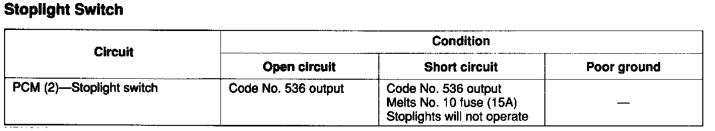- If the stoplight switch or circuit has an open or short, Diagnostic Trouble Code No. 536 is output.
