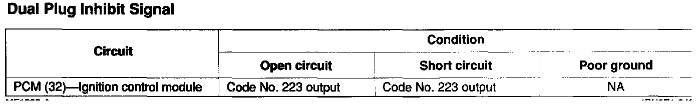 If the dual plug inhibit signal has an open or short, Diagnostic Trouble Code No. 223 is output.