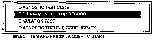 7. Select the "PID/DATA MONITOR AND RECORD" function on the NGS display.
