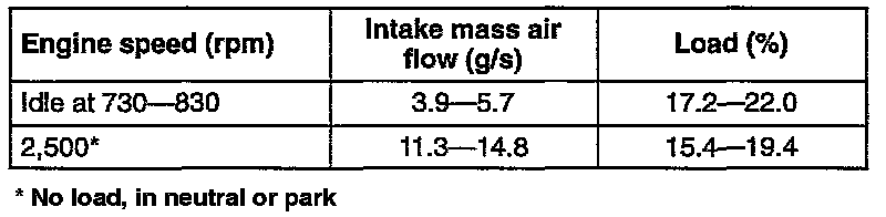 NOTE: The scan tool also shows the mass air flow rate and load values.