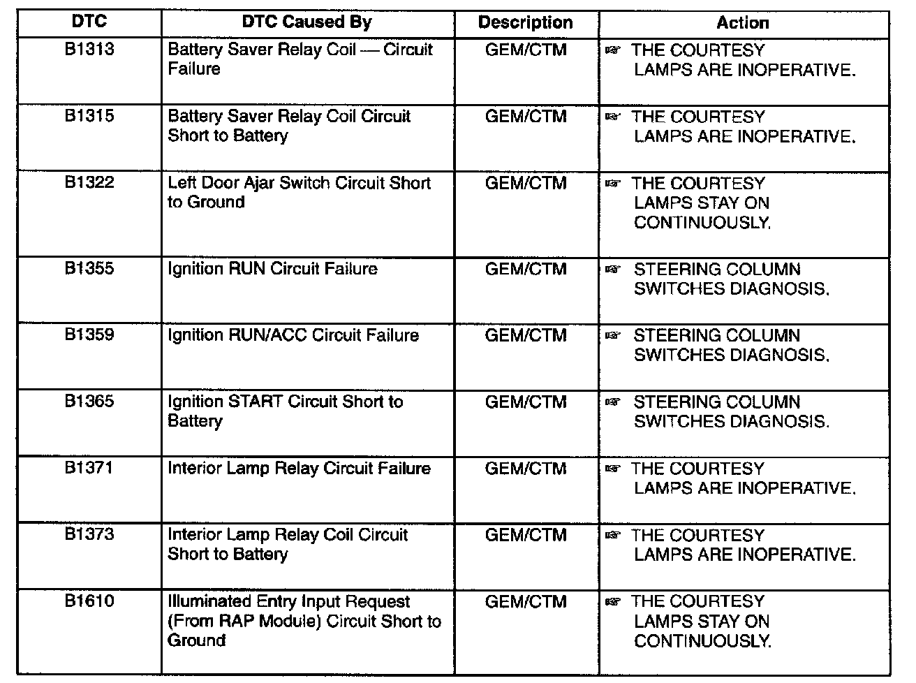 DTC B1313 - B1610: