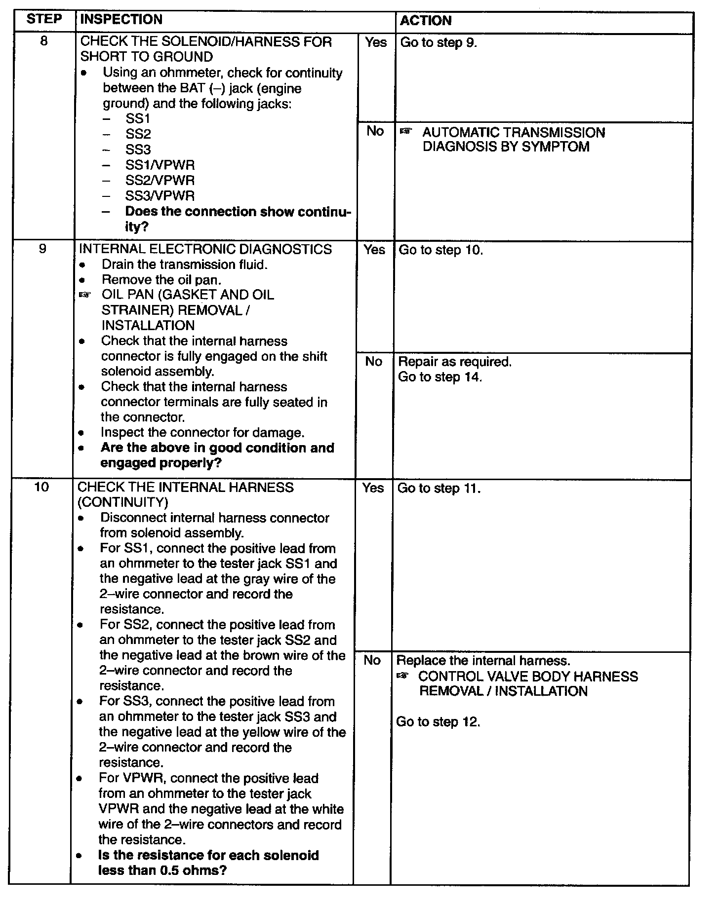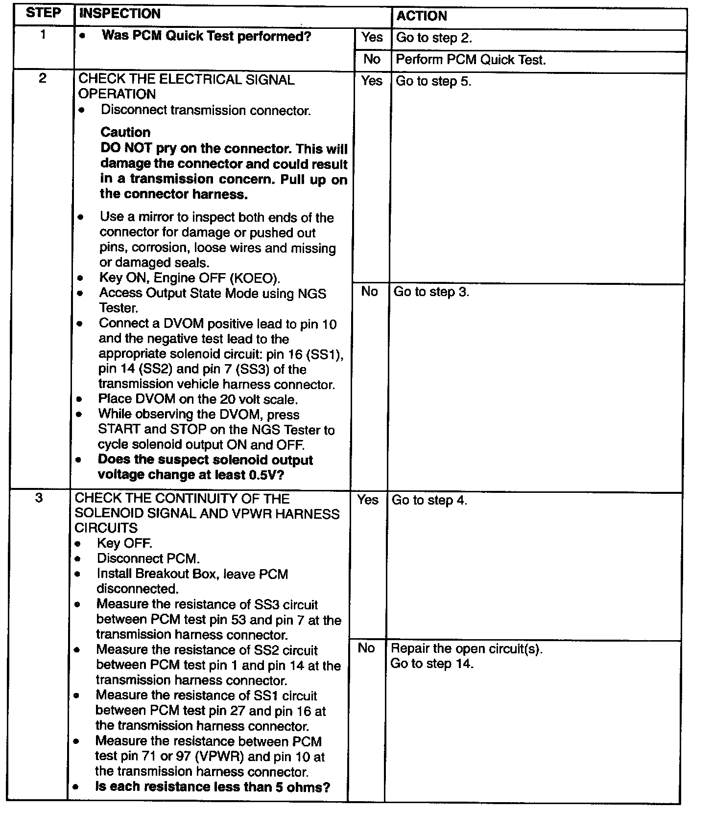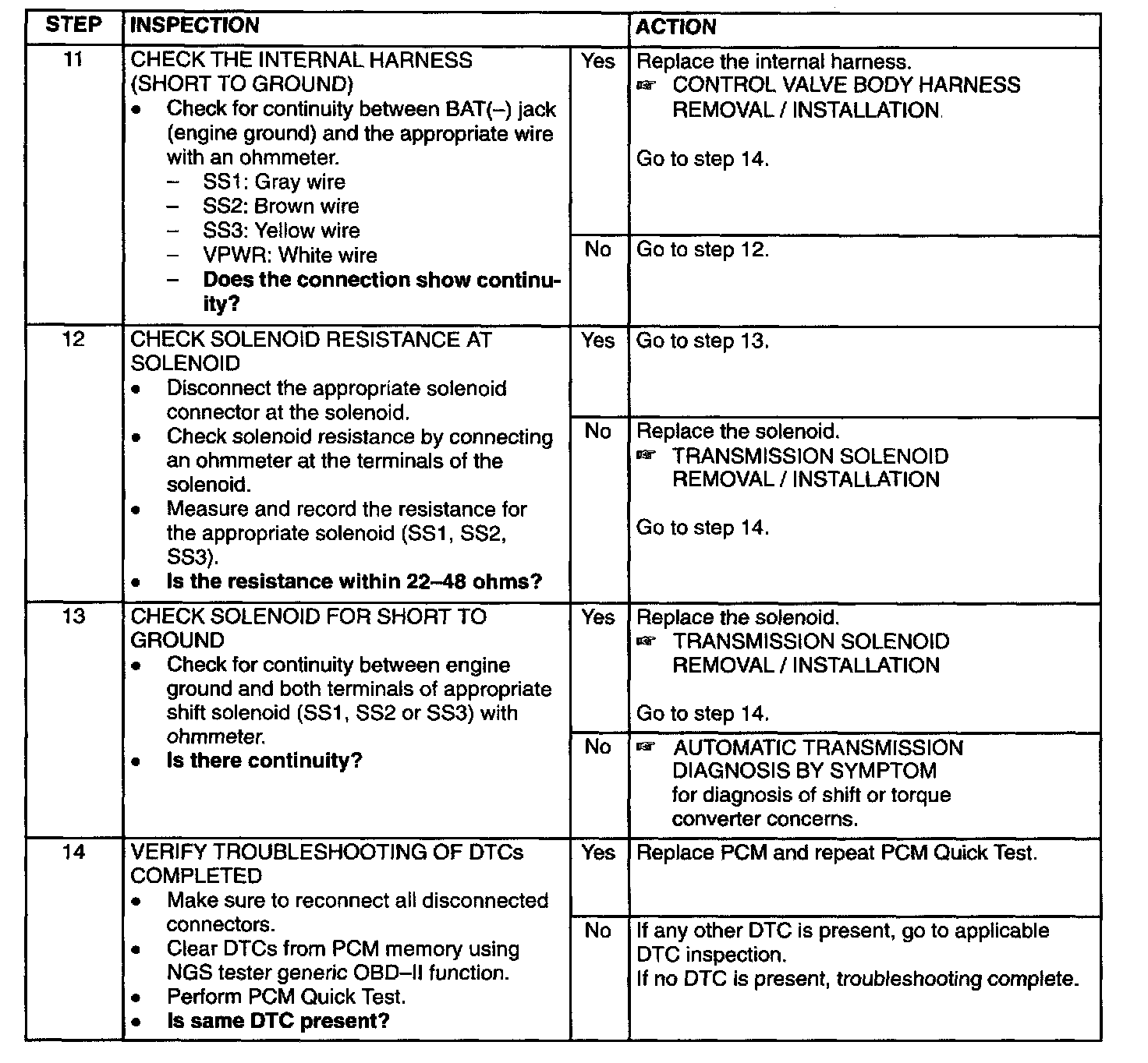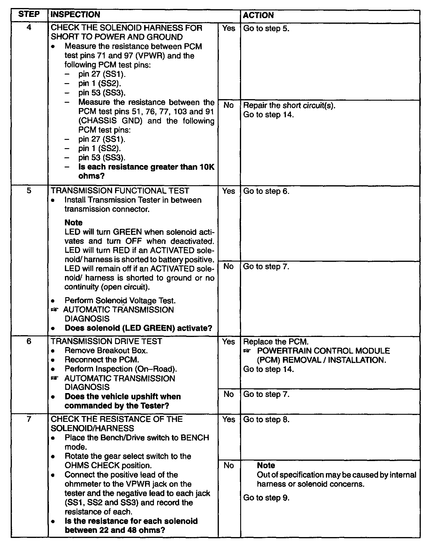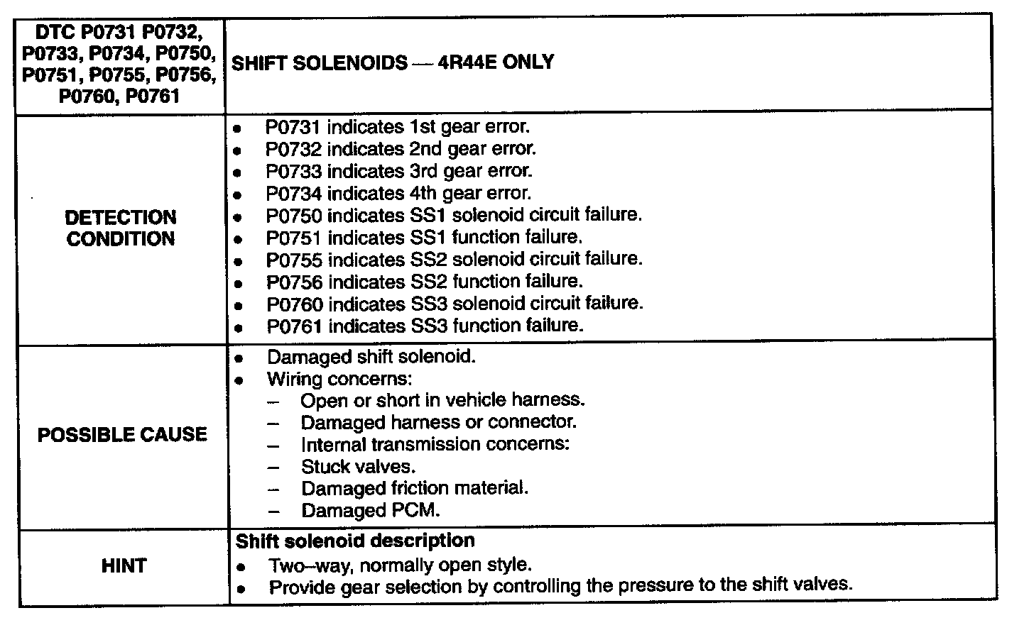 DTC P0731, P0732, P0733, P0734, P0750, P0751, P0755, P0756, P0760, P0761: SHIFT SOLENOIDS - 4R44E ONLY
