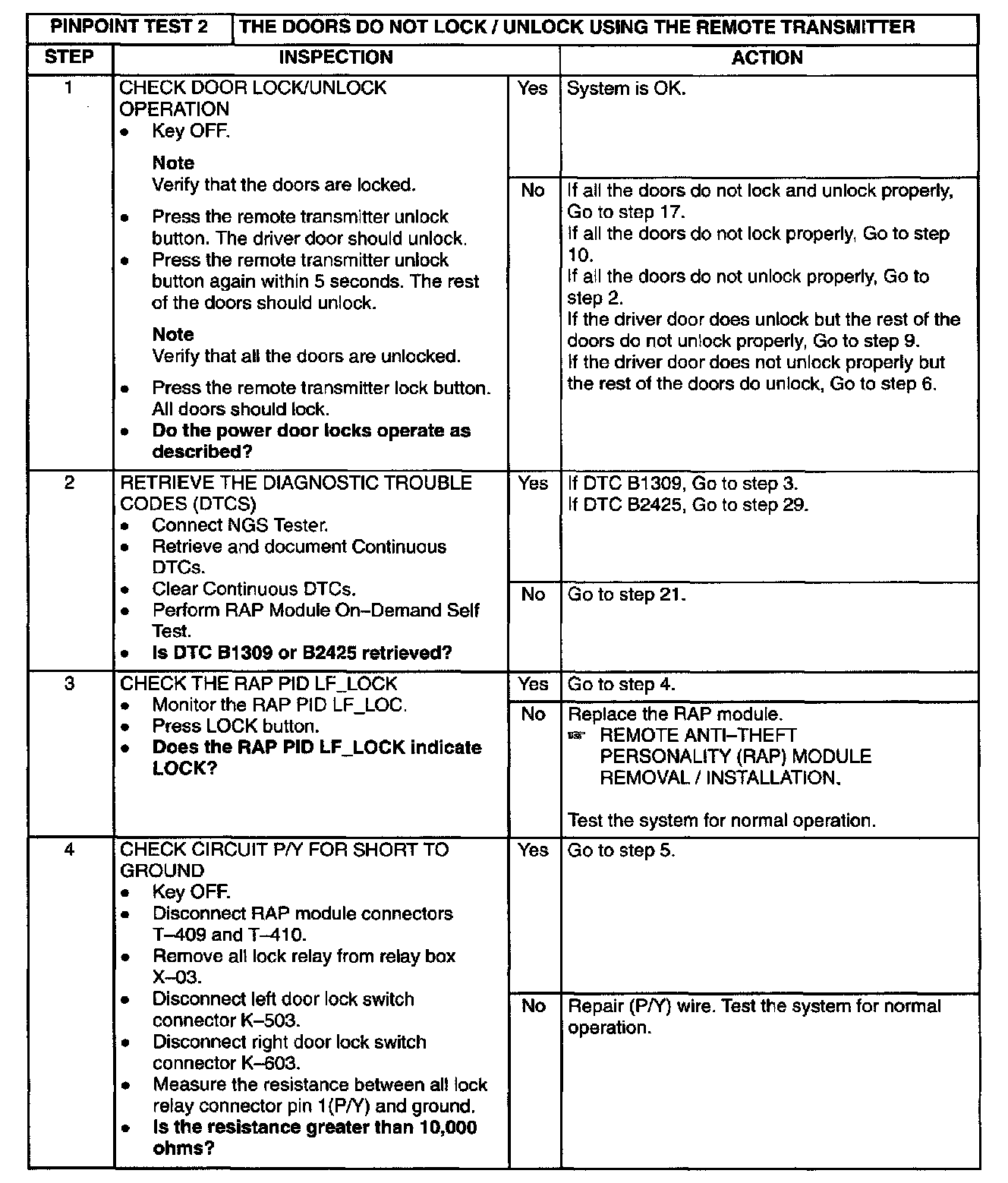 2: The Doors Do Not Lock /Unlock Using the Remote Transmitter