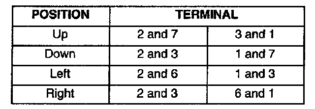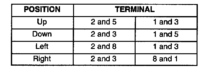 Use an ohmmeter to check for the continuity between the given terminals of the following table for the side that is not operating correctly.