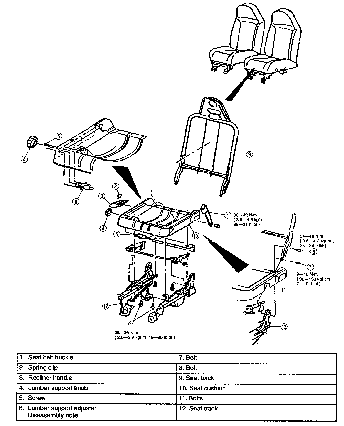 NOTE: Use care when separating the seat back from the seat base so the lumbar support cable does not become kinked or the operation of the lumbar support will be adversely affected.
