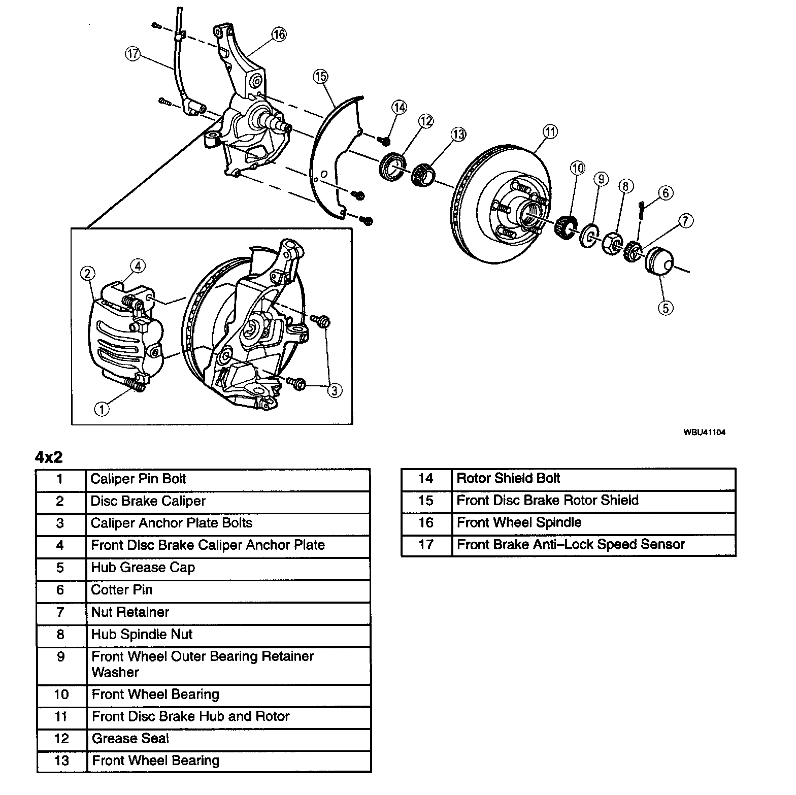 Note On 4 x 2 vehicles, the front disc brake hub and rotor should be rotated while adjusting front wheel bearing end play.