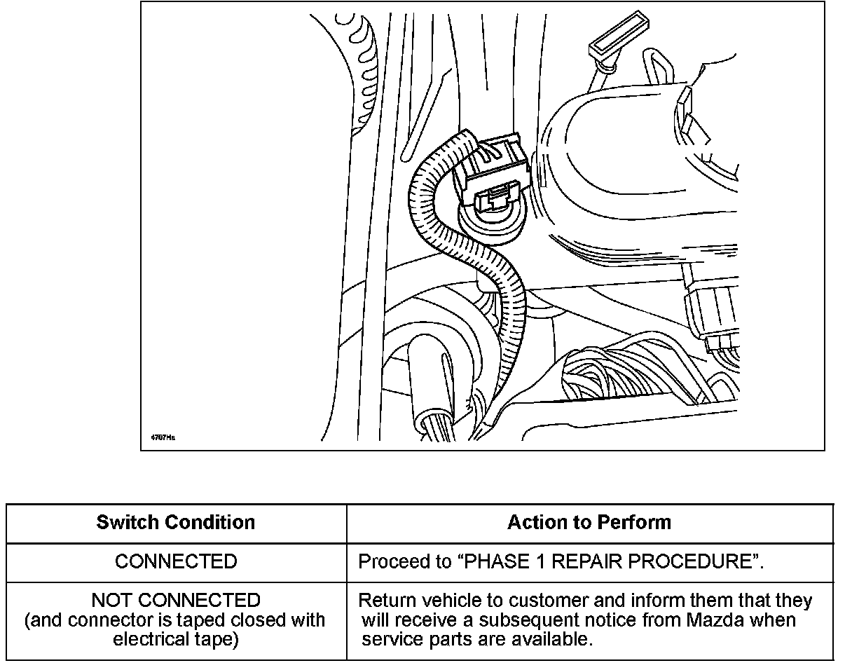 2. Check the physical connection of the cruise control deactivation switch. This inspection should be done by the Service Consultant to ensure the necessity of the interim repair.