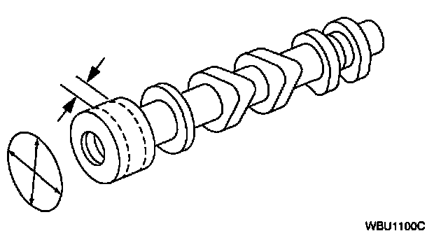 1. Measure each camshaft journal diameter in two directions. If out of specification, replace as necessary.