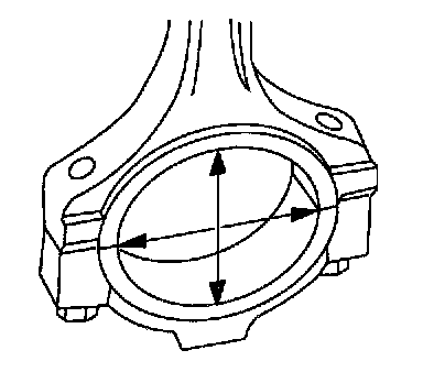 1. Measure the bearing bore in two directions. The difference is the connecting rod bore out-of-round. Verify the out-of-round is within specification.