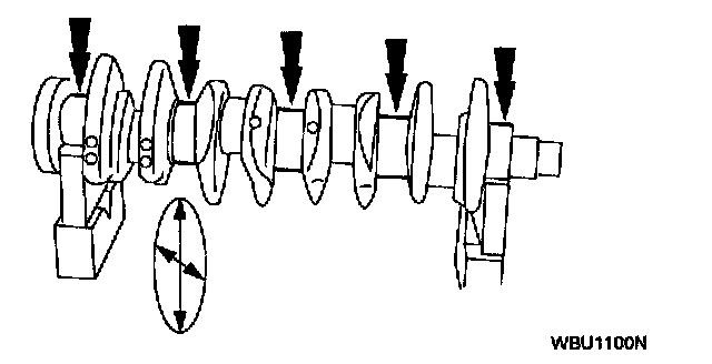 ^ The crankshaft connecting rod journals must be within specification to check the connecting rod bearing journal clearance.