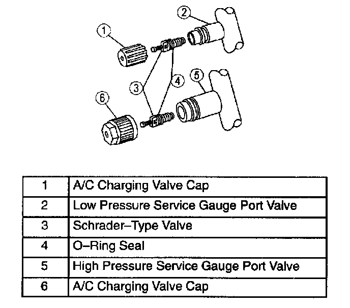 - Always install the A/C charging valve cap on the service gauge port valves after repairing the refrigerant system.