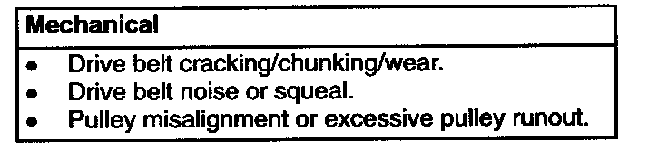 If the above procedures do not correct the drive belt noise, try replacing the drive belt with a known good original equipment drive belt. However, the drive belt noise may return (with mileage) if one of the above conditions still exists uncorrected.