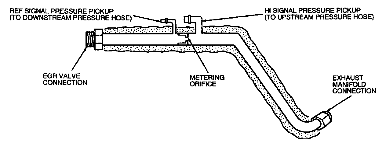 - Exhaust gas flowing through the EGR valve must first pass through the EGR metering orifice. With one side of the orifice exposed to exhaust back pressure and the other to the intake manifold, a pressure drop is created across the orifice whenever there is EGR flow. When the EGR valve closes, there is no longer flow across the metering orifice and pressure on both sides of the orifice is the same.