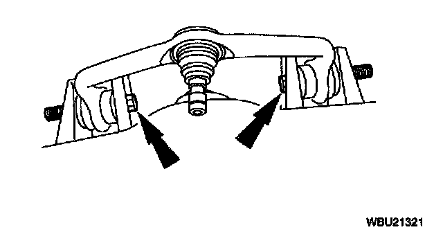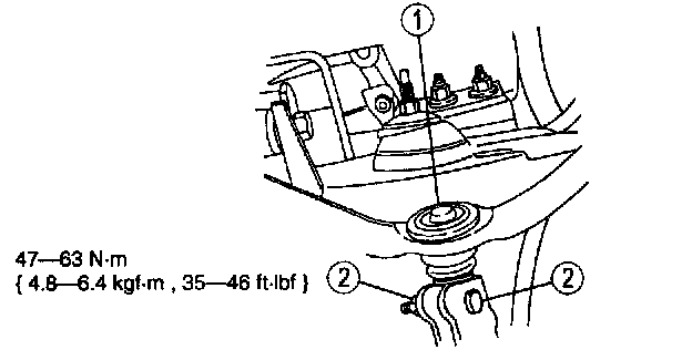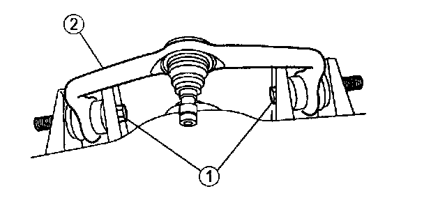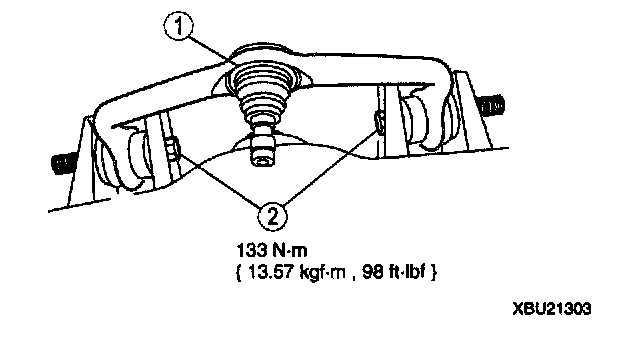 Note: The forward front suspension upper arm nut must be tightened first while the arm is held at the curb position ride height.