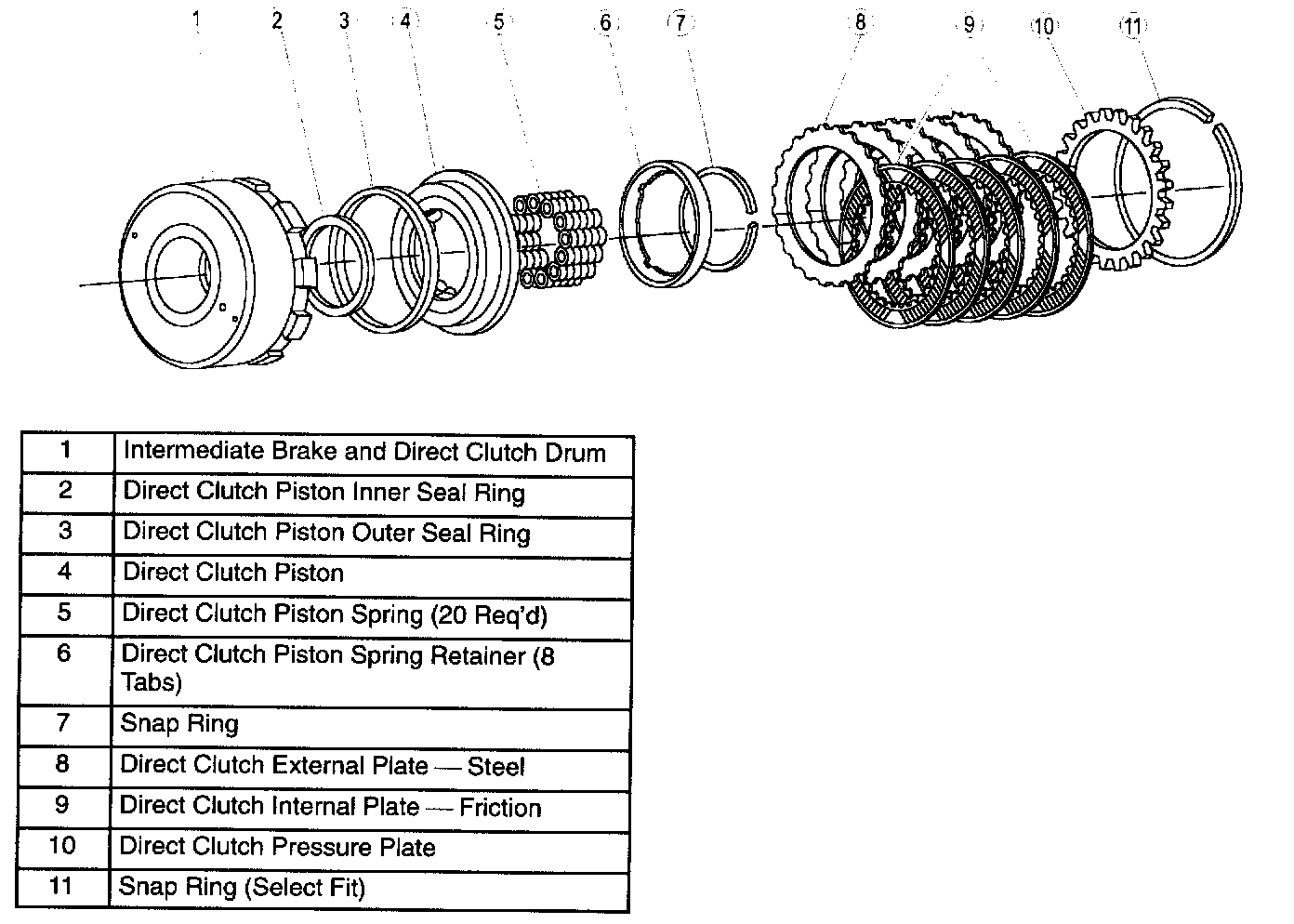 - The direct clutch is applied with hydraulic pressure and disengaged by return springs and the exhaust of the hydraulic pressure.