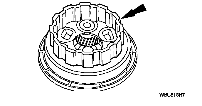 1) Temporarily insert the front/overdrive planetary gear carrier assembly into the one-way clutch rollers for verification of the one-way clutch.