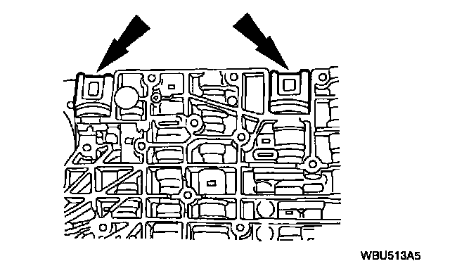 11. Install Valve Body Alignment Pin SSTs 49 UN01 139 and 49 UN01 140 into the main control valve body.