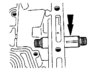 Caution Use care not to damage the fluid pan rail surface when installing the retaining pin.