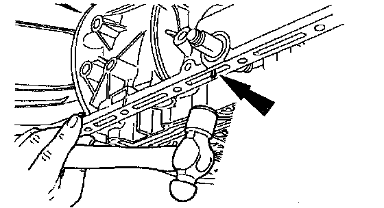 1. Tap lightly on each side of the manual control lever shaft spring pin with a drift punch.