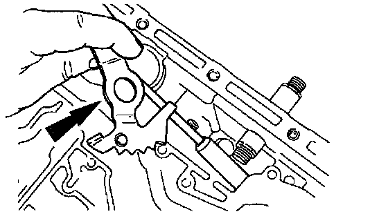 4. Align flats of the manual valve inner lever with flats on the manual control lever shaft. Install the manual valve inner lever and parking lever actuating rod onto the manual control lever shaft.