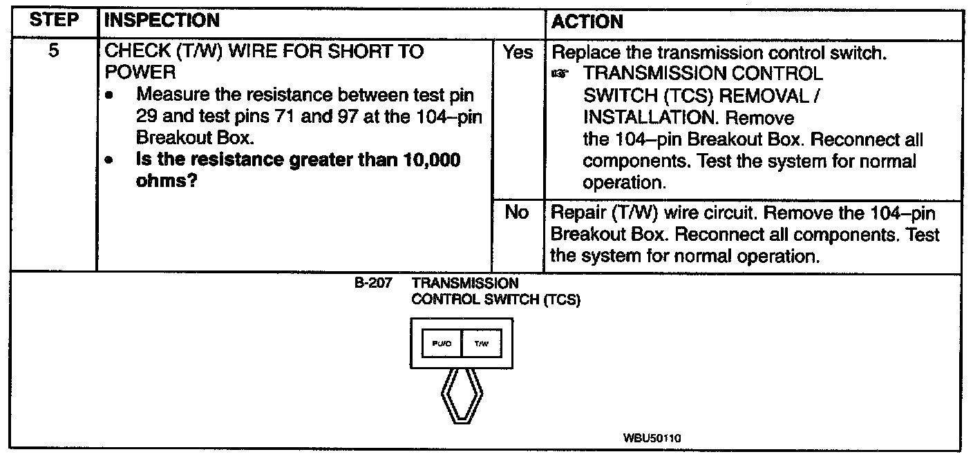 Test 3: the Transmission Control Switch Not Operating Properly