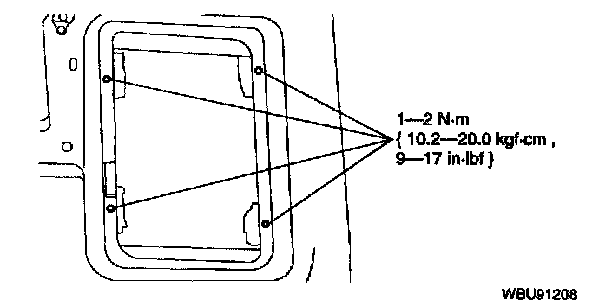 1. Remove the rear door trim panel.2. Remove the nuts.