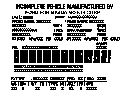 Vehicle Certification (VC) Label Incomplete Vehicle (Typical)