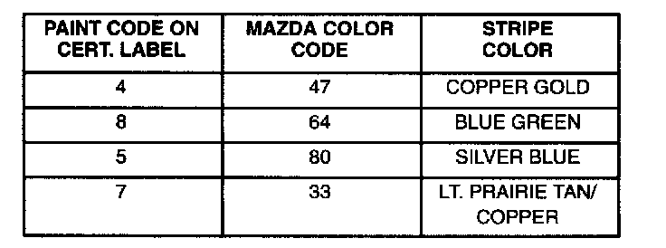The following lists the interior trim and interior color codes.