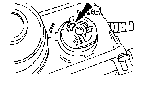 1. Depress the cruise control actuator cable cap tab inward and twist the actuator cap counterclockwise to remove.