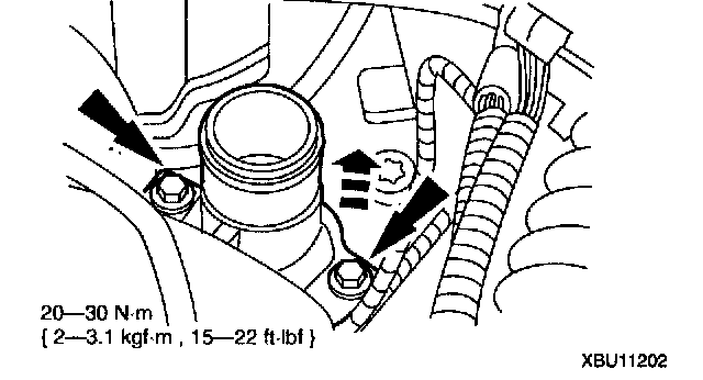 5. Remove the bolts. Pull elbow away from the cylinder head.