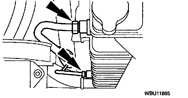 12. On vehicles equipped with automatic transmissions, disconnect the transmission cooler lines.