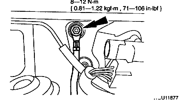 35. Remove the nut retaining the wiring harness.