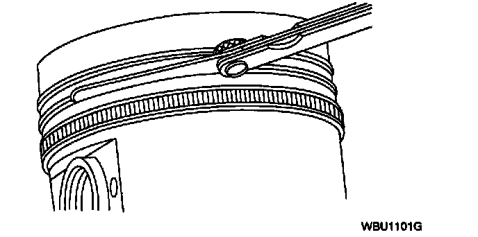 ^ Use care when fitting piston rings to avoid possible damage to the piston ring or the cylinder bore.