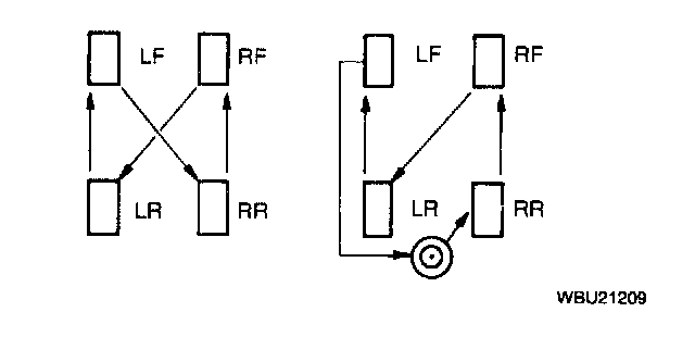 ^ After rotating the tires, adjust each tire to the specified air pressure. Refer to certification label located on driver's door jamb.
