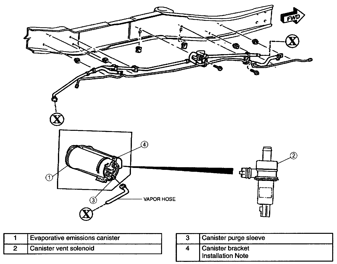 EVAPORATIVE EMISSIONS CANISTER BRACKET INSTALLATION NOTE