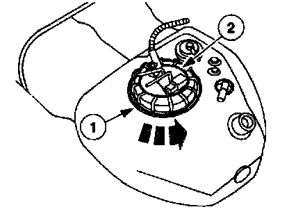 3. Using the special tool, remove the fuel tank sending unit assembly locking retainer ring (1).