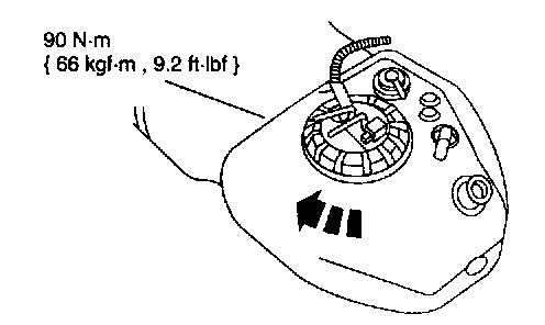 3. Using the special tool, tighten the fuel pump assembly locking retainer ring.