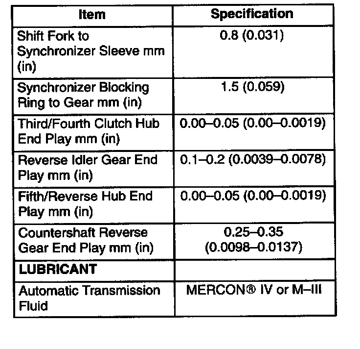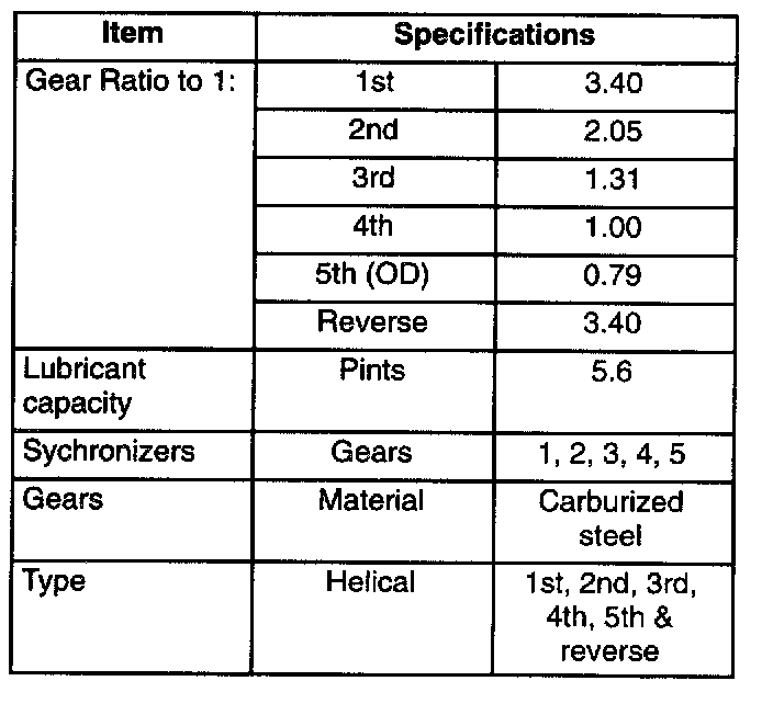 MANUAL TRANSMISSION SPECIFICATIONS - 5 SPEED OVERDRIVE (2.5L & 3.0L)